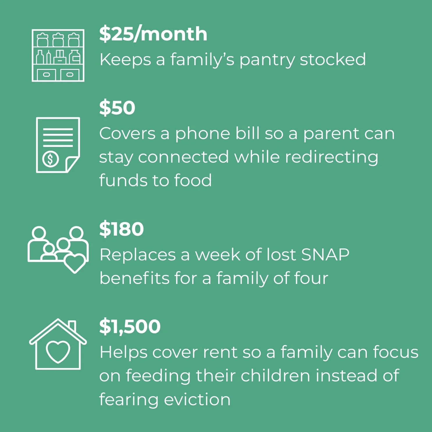 Both one-time and monthly gifts can go a long way in ensuring food security for families in need.